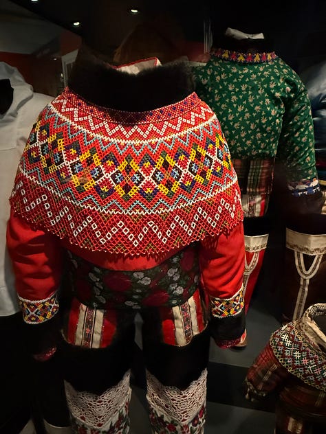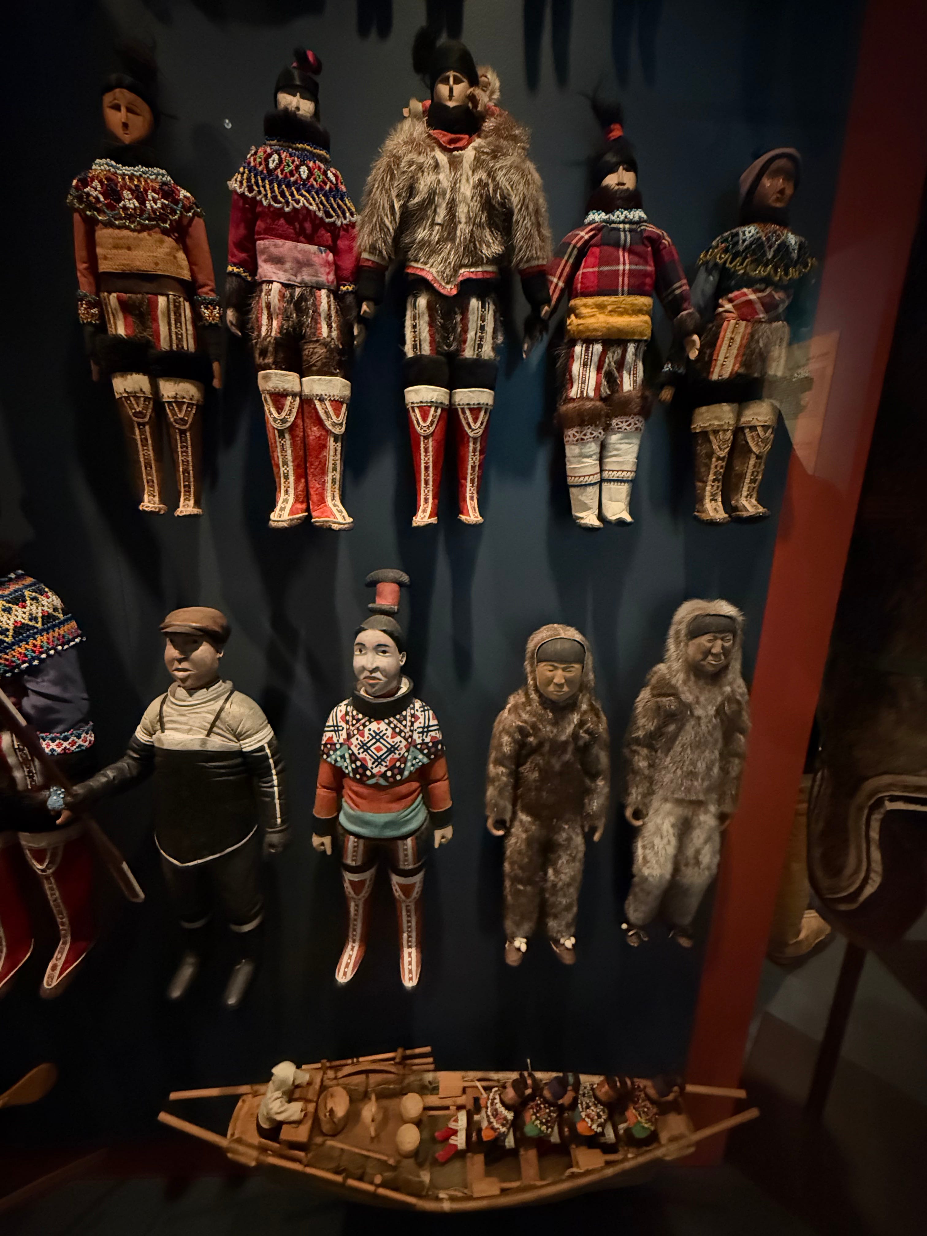 The Viking Sky crew handled the constantly changing destinations with poise and tenacity. They set up a shuttle bus for us from the port to the main part of town, and secured free admission for passengers to the Greenland National Museum. The museum told the stories of the various people, indigenous and settlers, who have called the largest island in the world home. We saw artifacts including clothing, tools, dolls, masks, toys and carvings. Here’s a sampling.